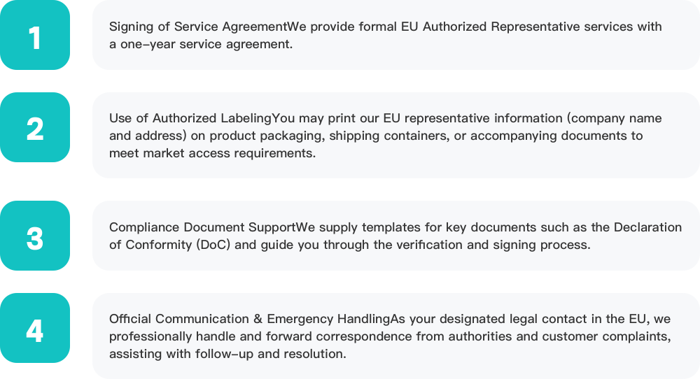 1. Scope of ServicePlease note that our company does not currently provide UK Authorized Representative services for entities based within the European Union.